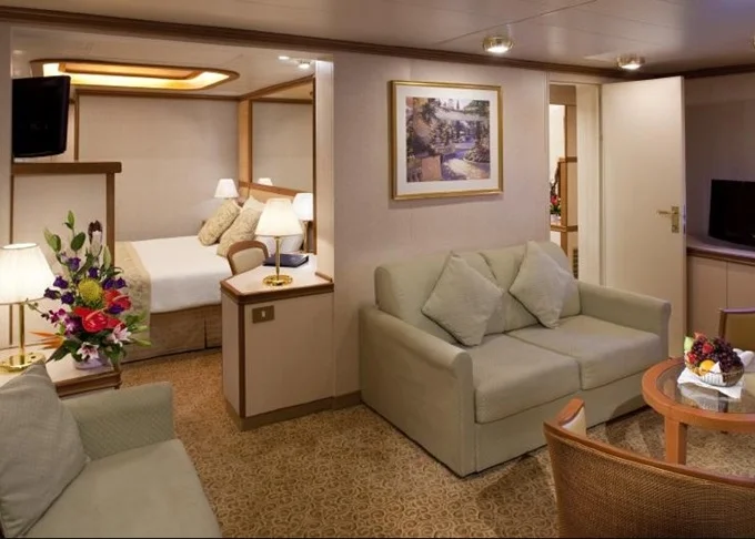 S6 - Vista Suite s balkónom 45 m² (vrátane balkóna). Max 3-4 osoby (gauč + horné lôžko). Výhody Suite. 4 970 € 2 485 € za osobu