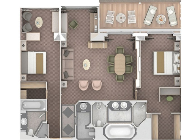 | O2 - Owner's Suite 2 119 - 129 m² (vrátane veľkej verandy). Owners Suite O1 spojená s Panorama Suite. 9. paluba - stred. Max 5 osôb. | 36 800 € 18 400 € za osobu |