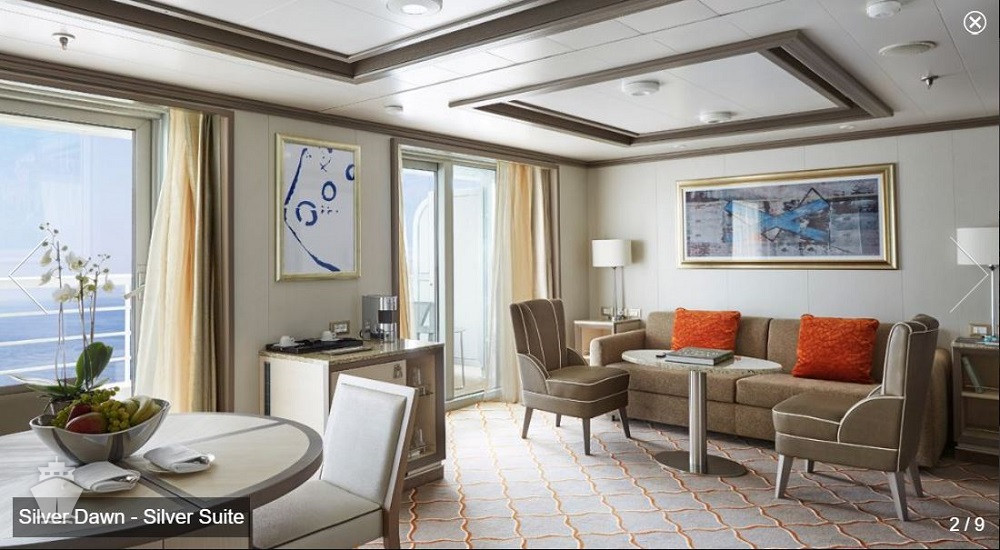 | S2 - Silver Suite 2 104 m² (vrátane balkóna). Silver Suite SL spojená s Panorama Suite. 9,10,11. paluba . Max 5 osôb. | 25 400 € 25 400 € za osobu |