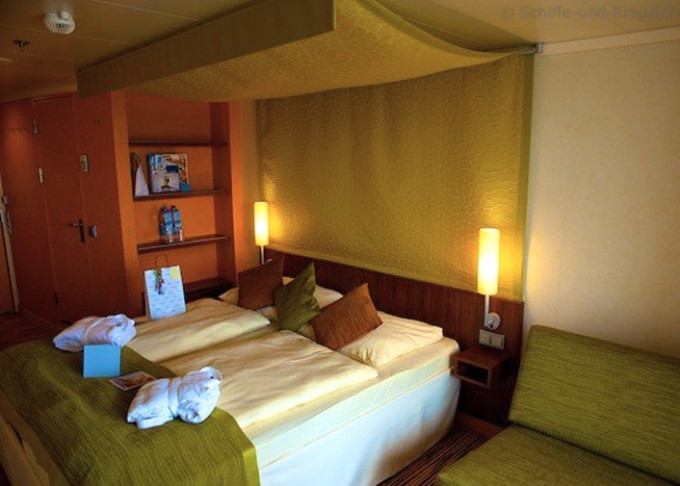 CA - Vonkajšia kajuta PREMIUM / obmedzený výhľad od 14 m². Neotvárateľné okno / obmedzený výhľad. 2. paluba. Max 2 osoby. Cenový model Premium. 3 310 € 1 655 € za osobu