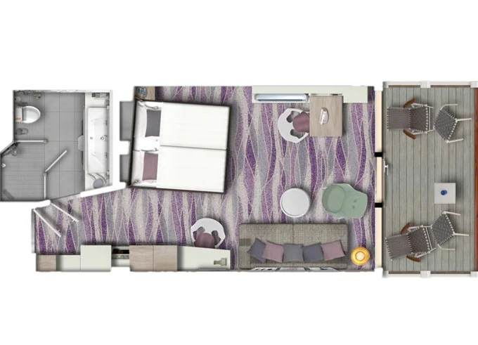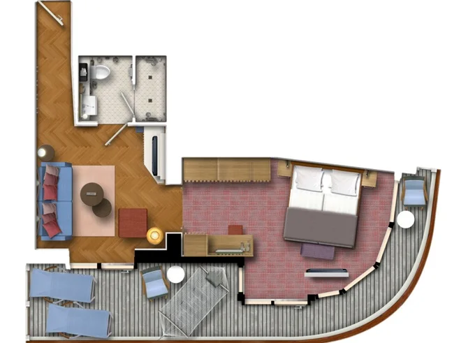 | JBAO - Junior Suite s balkónom 26 m² + balkón 7 m² so stolom. 10,11. paluba. Max 4 osoby. Výhody Junior Suite. | 14 098 € 7 049 € za osobu | ||